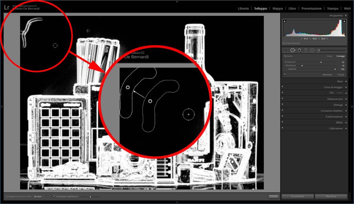 Fig. 02. Lo strumento Rimozione macchie con attivata l'opzione Visualizza imperfezioni.