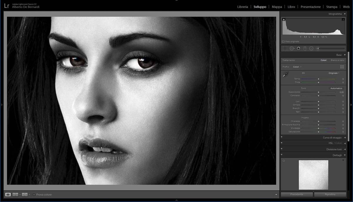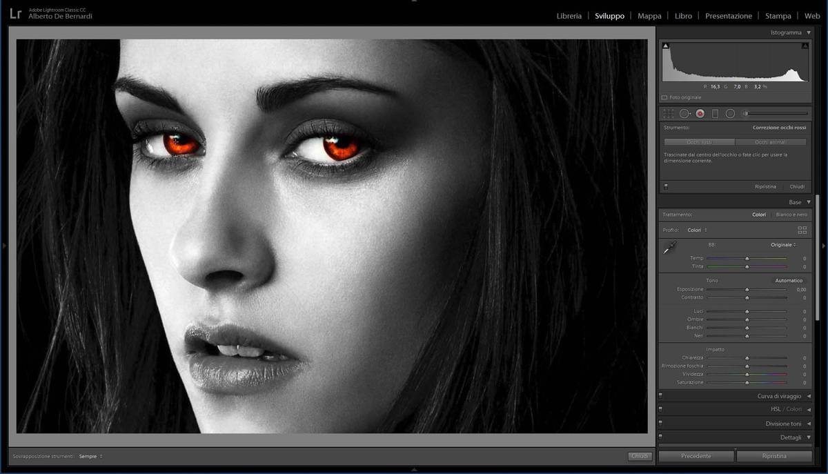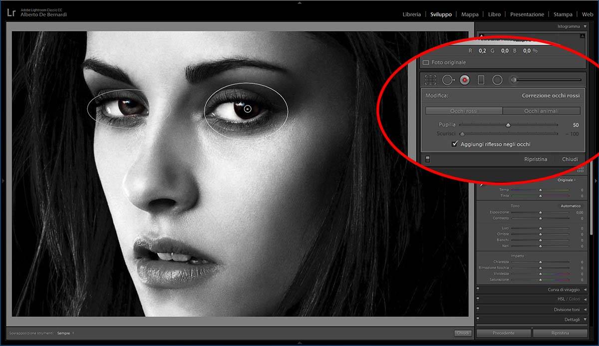 Fig. 05. Lo strumento Occhi rossi di Lightroom risolve anche il "grave problema" di Isabella Swan…