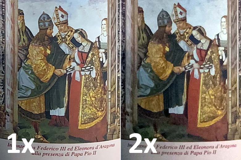 Sopra: modalità standard. Sotto: modalità zoom 2X