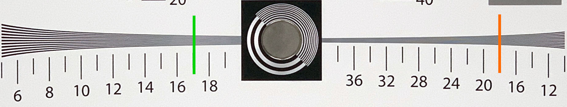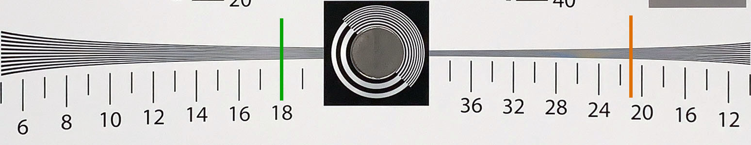 Le immagini prodotte in modalità standard (zoom 1x) sono incise e ricche di dettagli: l'estinzione del pattern di risoluzione si osserva nell'intorno alle 2100 LW/PH, con buona leggibilità dei particolari fino a 1800. Il riscontro visivo è confermato dal risultato numerico dell'analisi Hyperbolic Wedge, che assegna a questo modello punteggi nell'intorno delle 1900 LW/PH.