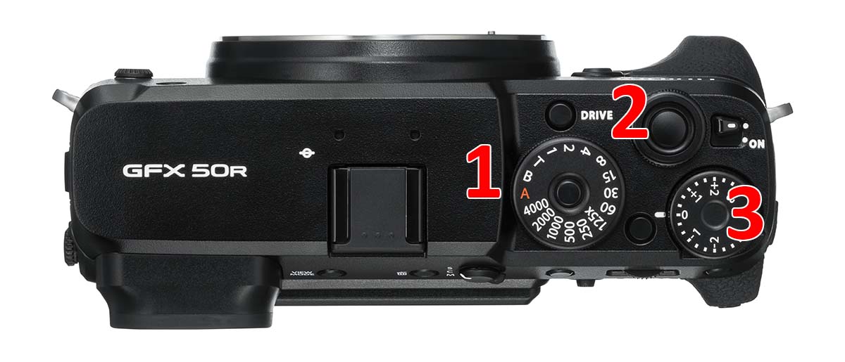 1 – La ghiera dei tempi va da 1s a 1/4000s in passi di uno stop. Passi intermedi possono essere selezionati ruotando la ghiera posteriore. Disponibili inoltre la posa B e la posizione T (Time position) che, sempre in combinazione con la ghiera posteriore, da accesso all'intera gamma di tempi di posa, in questo caso particolarmente ampia: si arriva a 60 minuti in passi da 1/3 EV.