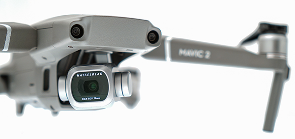 Molta quindi era la curiosità nei confronti del fratello maggiore, DJI Mavic 2 Pro, che nasce dalla collaborazione diretta con Hasselblad (acquisita in toto da DJI all'inizio del 2017) e che utilizza una foto/videocamera con sensore da 20 megapixel in formato da 1" con ottica F2.8 che inquadra un angolo di campo di circa 77°, pari a quello di un obiettivo 28mm sul formato 35mm. Il formato più ampio del sensore permette di avere maggiore risoluzione senza dover ridurre troppo la dimensione dei pixel e quindi avere una buona resa fotografica anche alle alte sensibilità. Il modulo Hasselblad può scattare immagini con sensibilità comprese tra 100 e 12.800 ISO, mentre nella registrazione dei video la sensibilità massima si ferma a 6400 ISO. Tra le particolarità interessanti della versione Pro (non disponibili nella versione Zoom) troviamo la possibilità di registrare video in formato Dlog-M a 10 bit per la massima gamma dinamica e video HDR, sempre a 10 bit, in formato HLG, per la visione diretta in HDR sui dispositivi compatibili.
