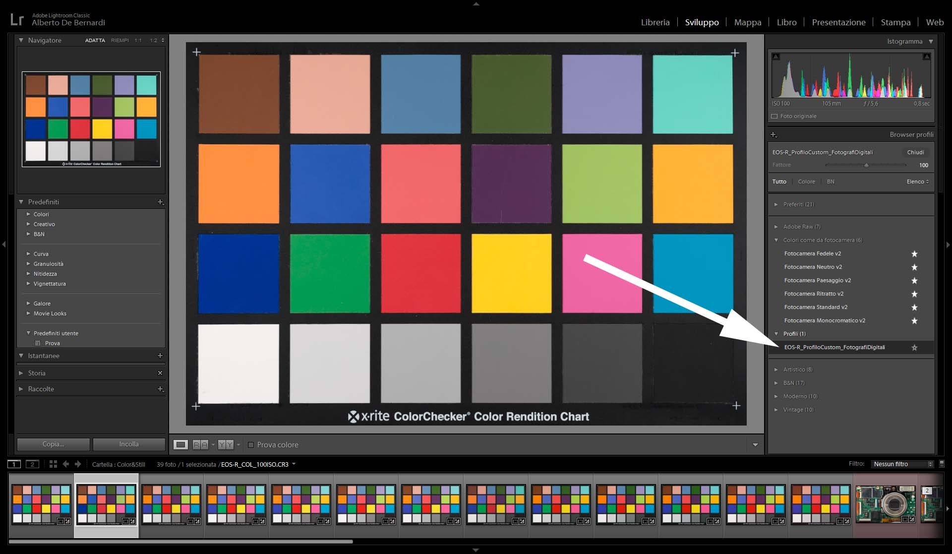 Una volta riavviato Lightroom, il profilo custom apparirà tra quelli già forniti da Adobe, ma solo quando si lavora su un file RAW prodotto dalla fotocamera per cui è stato creato.
