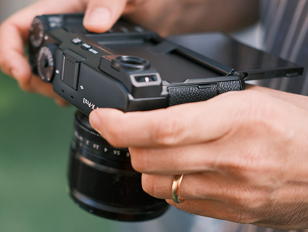 Nella sua terza incarnazione. X-Pro 3 porta all'estremo il suo carattere vintage e addirittura nasconde lo schermo, a favore di un piccolo display sul retro che di default riporta i dati della simulazione pellicola, così come se si fosse messo il talloncino della scatola del rullino, come avveniva quando si scattava a pellicola. Una soluzione da alcuni reputata inutile, ma dal vivo, lo devo confessare, maledettamente bella. C'è un piacere squisitamente estetico nel non vedere una semplice icona sul tradizionale display posteriore a indicare la simulazione pellicola scelta e trovarsi invece il finto talloncino, coi i colori delle scatole dei rullini che furono. In realtà è un modo anche molto efficace per capire con che modalità si sta scattando, anche solo con la coda dell'occhio. Il piccolo display può essere impostato anche in modalità più 'moderna e digitale' e riportare il riassunto dei dati di scatto. Il display è nascosto, ma c'è. Si apre con una rotazione verso il basso e può essere utilizzato 'a pozzetto' dall'alto (ad esempio per i video) oppure per inquadrature con la fotocamera sopra la testa. In più è touch.