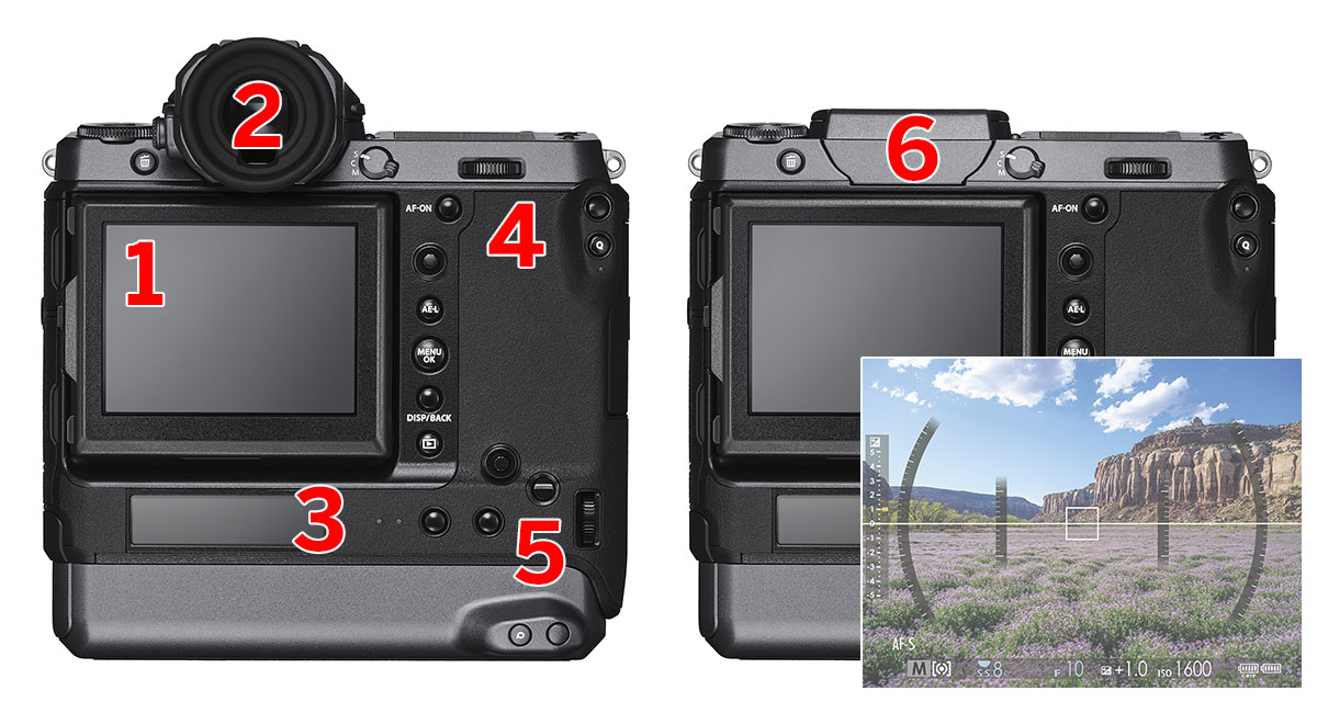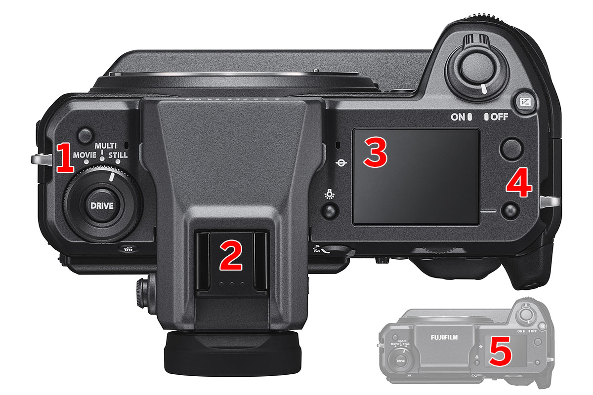 5 – Nel riquadro, la GFX 100 senza mirino.