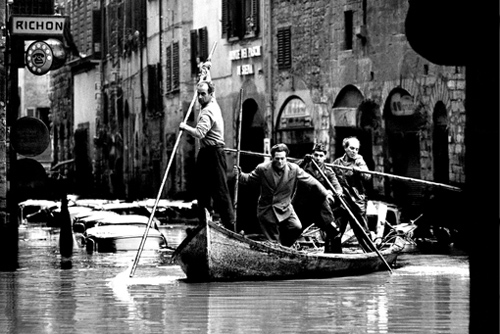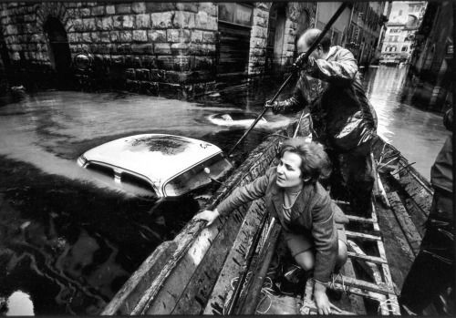 Uno dei primi lavori importanti di Giorgio Lotti, il reportage dell'alluvione che ha colpito Firenze nel 1966. Il fotoreporter si recava direttamente sul luogo e ci stava per giorni, tanto che gli ultimi scatti ritraggono una Firenze senza più acqua ma invasa dal fango. Direttamente a contatto con la gente e col dramma, spesso rendendosi utile e mettendo via la macchina fotografica. Sono attimi fissati che emozionano, sconvolgono, fanno vivere direttamente il dramma. Nel 1966 la TV è già diffusa, ma per molti la carta stampata resta il media principale per prendere contatto con la realtà e la cronaca.