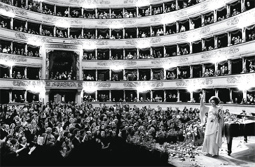 Passare oltre 500 serate alla Scala significa conoscere tutti ed entrare in confidenza con molte persone che allora orbitavano in quel mondo, conquistandone la fiducia più totale essendo Lotti un uomo e un fotografo discreto ed estremamente rispettoso. Lo scatto che vediamo qui nasce proprio da questa fiducia: solo Giorgio Lotti sapeva, all'epoca dello scatto, che quella sarebbe stata l'ultima volta sul palco del soprano Renata Tebaldi. Era stata proprio lei a fargli questa confidenza, dando poi allo scatto un valore anche affettivo e simbolico. L'altra prova di fiducia è il conferimento di un permesso perenne ottenuto per entrare alla Scala. Un attestato di fiducia più unico che raro.