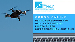 Per ora in estrema sintesi ripetiamo il punto fondamentale del nuovo regolamento entrato in vigore il 1° marzo e che dal giorno 5 marzo 2020 permette di ottenere online l'attestato di pilota APR (Operazioni non critiche) seguendo un corso online, sostenendo un esame, sempre online, al modico costo di 31 Euro.