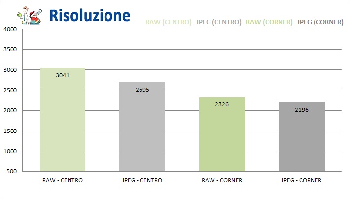 Il rapporto segnale/rumore del RAW è, purtroppo, tra i peggiori della categoria, frutto dell'elevata densità di pixel.