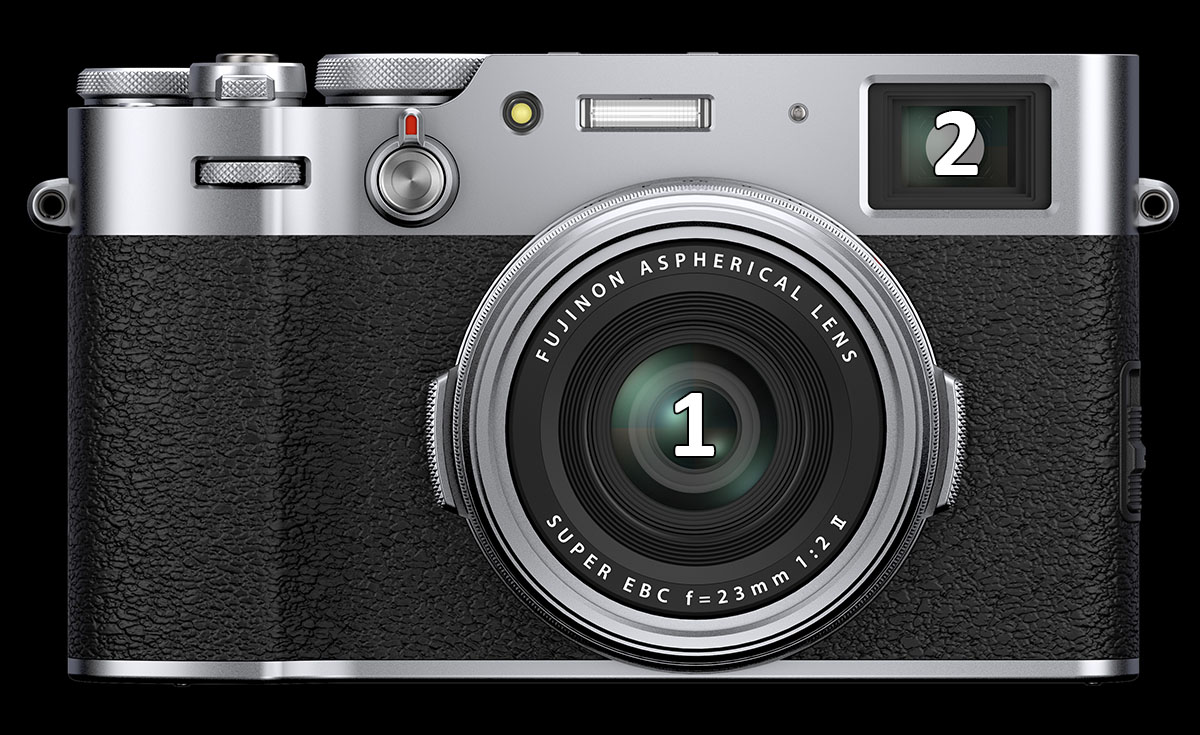 1 – L'obiettivo è una delle novità di questa quinta generazione. Invariata la focale di 23mm (35mm equivalenti), apertura massima (f/2) e persino schema ottico, che però comprende ora un elemento asferico extra. I convertitori grandangolari nati per le generazioni precedenti sono compatibili anche con la X100V.