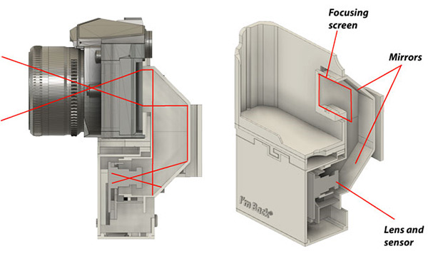 L'idea è stata quella di un dorso universale che potesse utilizzare un sensore digitale al posto della pellicola. L'implementazione è simile alle primissime reflex digitali con dorso Kodak, che era una sorta di fondello aggiuntivo che ospitava l'elettronica e poneva un sensore digitale dietro la tendina. Ai tempi la soluzione Kodak era accessibile solo ai professionisti più facoltosi. L'idea di Samuel sfrutta un principio simile, ma parte dal desiderio di essere accessibile e poco costosa, per permettere a tutti di riportare in vita le fotocamere di una volta, compresa quella con cui magari si è iniziato a scattare in giovane età.