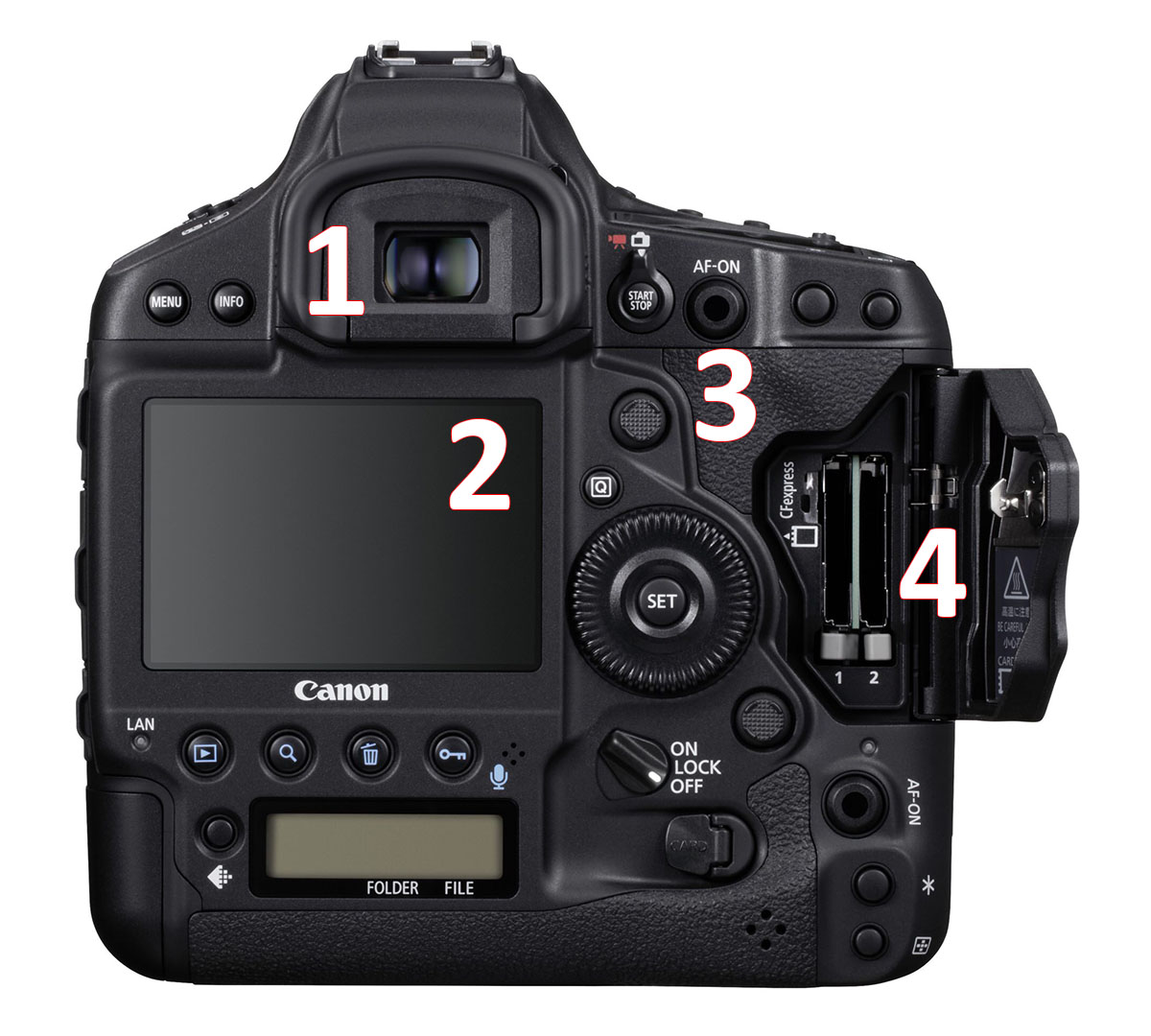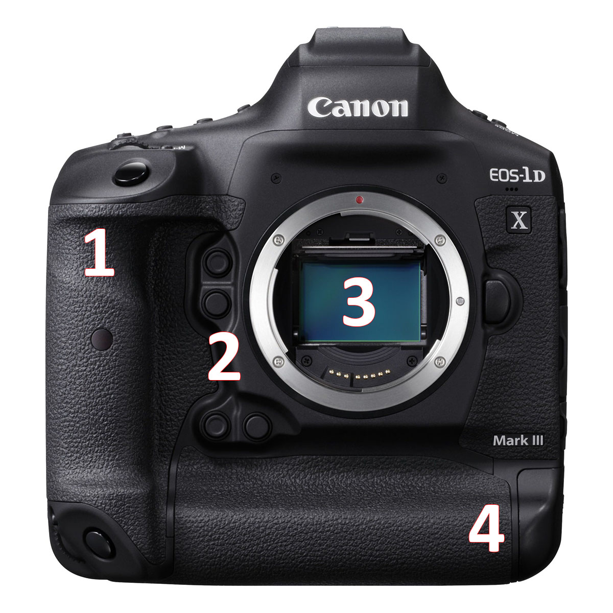 Solo i più attenti osservatori potranno notare alcuni piccole modifiche allo chassis della 1D X Mark III rispetto al modello precedente: il connettore N3 (controllo remoto) è ora sul lato sinistro, insieme a tutti gli altri; il connettore USB è ora USB C; nuovo anche il terminale per il trasmettitore Wi-Fi dedicato WFT-E9 (E9a per gli USA) – la EOS-1D X Mark III è incompatibile con l'analogo WFT-E8 del precedente modello. Dimensioni fisiche identiche, peso ridotto di 90g. Le novità più sostanziali riguardano lo Smart controller (vedi fig. 3-3) e lo slot di memory card, ora rigorosamente CFexpress (vedi fig. 3-4).