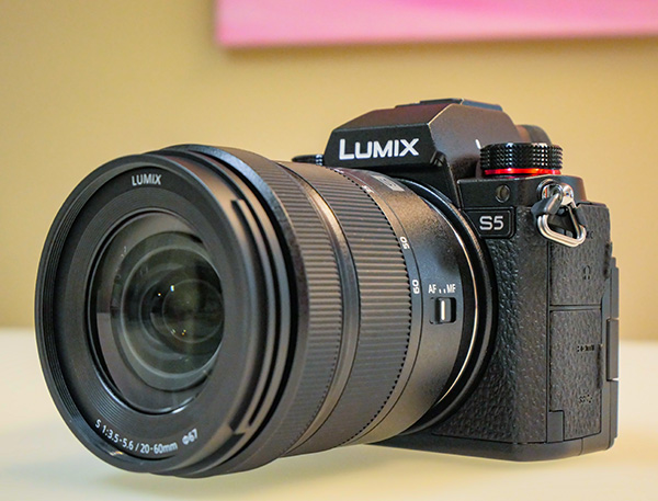 Nonostante sia una 'sorellina' di S1, alcune caratteristiche superano la capostipite, e pongono per certi versi Lumix S5 vicina al piano di S1H, per la quale può candidarsi al ruolo di secondo corpo senza richiedere modifiche al flusso di lavoro. Troviamo i formati V-Log ad alta gamma dinamica, con più di 14 stop di latitudine di posa, ma anche il supporto alle ottiche anamorfiche. La fotocamera può registrare filmati 4K 60p, sfruttando un ritaglio del sensore in formato Super 35mm (assimilabile all'APS-C), in formato 4:2:0 10-bit, oppure utilizzare tutta la superficie del sensore per video 4K 30p 4:2:2 10-bit. In formato Full HD può arrivare fino a 180 fotogrammi al secondo, per la creazione di filmati al rallenty: la novità su S5 è la scorciatoia per i video ad alto frame rate direttamente sulla ghiera dei modi. Diversi formati non hanno limiti di tempo di registrazione, mentre per i più pesanti in termini di elaborazione il limite è fissato in 30 minuti. La fotocamera può registrare filmati in HDR e permette di utilizzare diverse LUT per previsualizzare l'effetto finale.