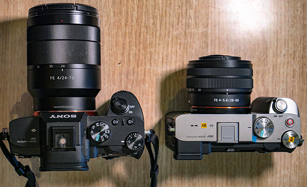 Il corpo in lega di magnesio pesa solo 509 grammi, circa 140 grammi in meno di quello di A7 III e solo 6 grammi in più rispetto a quello dell'APS-C Sony A6600. Discorso simile per lo spessore totale, che con l'impugnatura è pari a 59,7 millimetri, a fronte di 73,3 e 59,0 per A7 e A6600. L'altezza della fotocamera invece si posiziona a metà: 71,1 millimetri contro 95,6 e 66,9. Chi utilizza le mirrorless sa bene però che la compattezza non sta solo nel corpo, ma deve risiedere anche nelle ottiche. Sony all'uopo presenta assieme alla macchina il compagno perfetto, l'obiettivo FE 28-60mm f/4-5.6, molto leggero e compatto e dal design collassabile, che permette di ritrarre l'ottica quando non in uso e risparmiare spazio nella borsa.