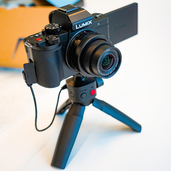 Fa parte dell'ottimizzazione in ottica video anche l'accessorio presentato assieme alla macchina fotografica, l’impugnatura DMW-SHGR1. Si tratta di un'impugnatura con testa a sfera che è possibile trasformare in un piccolo treppiedi. Connessa tramite cavo MicroUSB alla fotocamera l'impugnatura replica i comandi di scatto, di avvio della registrazione video e un pulsante sleep per mandare la fotocamera in standby tra una ripresa e l'altra. Si tratta di un accessorio molto comodo, anche se a livello ergonomico quello della Sony ZV-1 è meglio studiato, passando da posizione ergonomica in mano a in bolla sul piano semplicemente allargando le gambe, questo piccolo treppiedi Panasonic invece adotta un design di tipo classico.
