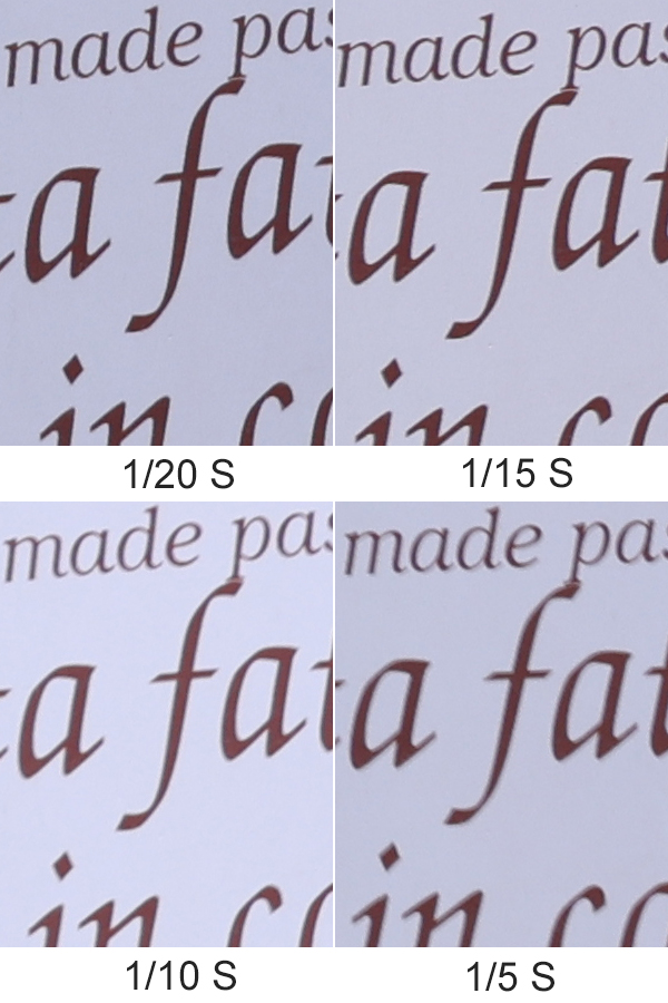 Facendo un po' di foto inutili di un menu di un ristorante a diversi metri di distanza sono riuscito a salvare una foto a 1/10s a mano libera. Un decimo di secondo a cinquecento millimetri. Se la foto non dovesse servire a tutta risoluzione, ma potesse tornare utile a risoluzione inferiore, con un po' di post produzione anche lo scatto a 1/5s risulterebbe pienamente utilizzabile.