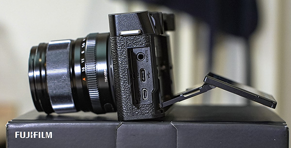 Le linee del corpo macchina ora sono più nette e squadrate e non ci sono fronzoli. Come già avvenuto su X-E3, il flash integrato a scomparsa è stato del tutto eliminato e ciò consente di risparmiare diversi millimetri di ingombro laterale rispetto alle prime due versioni della fotocamera. L'impugnatura è stata del tutto limata (anche se Fuji propone un interessante kit con fondello con aggancio Arca-Swiss, impugnatura aggiuntiva e appoggio per il pollice inseribile nella slitta flash). In controtendenza invece la scelta fatta per il display, che da fisso diventa finalmente basculante, con un meccanismo che lo rende ribaltabile in avanti e utilizzabile in modalità selfie, anche per i video e V-Log.