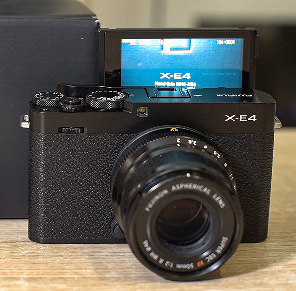 Come accaduto anche per Fujifilm X-S10, anche X-E4 vuole presentarsi sul mercato con un prezzo concorrenziale e fa alcune rinunce rispetto alla top di gamma X-T4: l'otturatore meccanico si ferma a 1/4000s (contro 1/8000s) e i filmati 4K possono essere registrati fino a 30p (invece che 4K/60p sull'ammiraglia). Su porta HDMI è possibile estrarre un flusso video 4:2:2 a 10-bit, mentre su scheda è registrabile il formato 4:2:0 a 8-bit. In formato Full HD la fotocamera arriva a registrare a 240 fotogrammi al secondo.