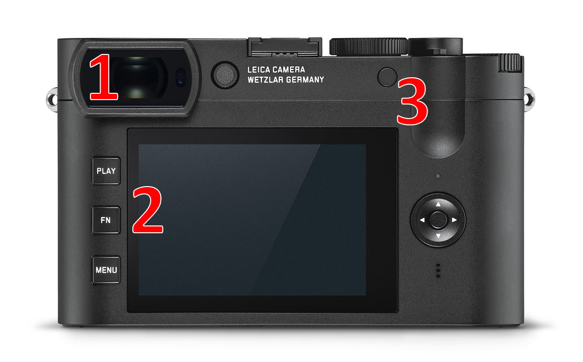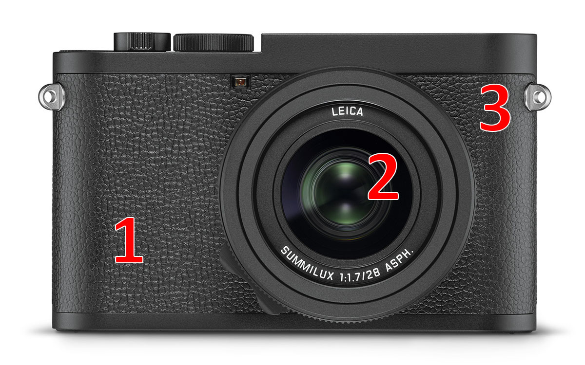 01 – Al pari delle Leica M, anche la Q2M non offre una vera impugnatura, e l'unico (debole) effetto antiscivolo è dato dalla copertura anteriore in ecopelle.