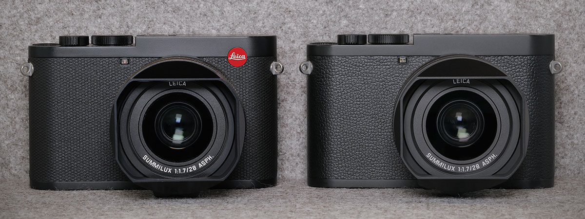La finitura anteriore in ecopelle distingue la Monochrom dalla Q2 originale (qui sotto, a sinistra), così come l'assenza del bollino rosso anteriore. Se Monochrom dev'essere, Monochrom sia, a cominciare dall'aspetto!