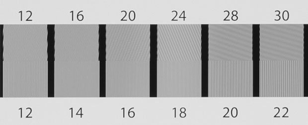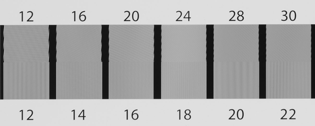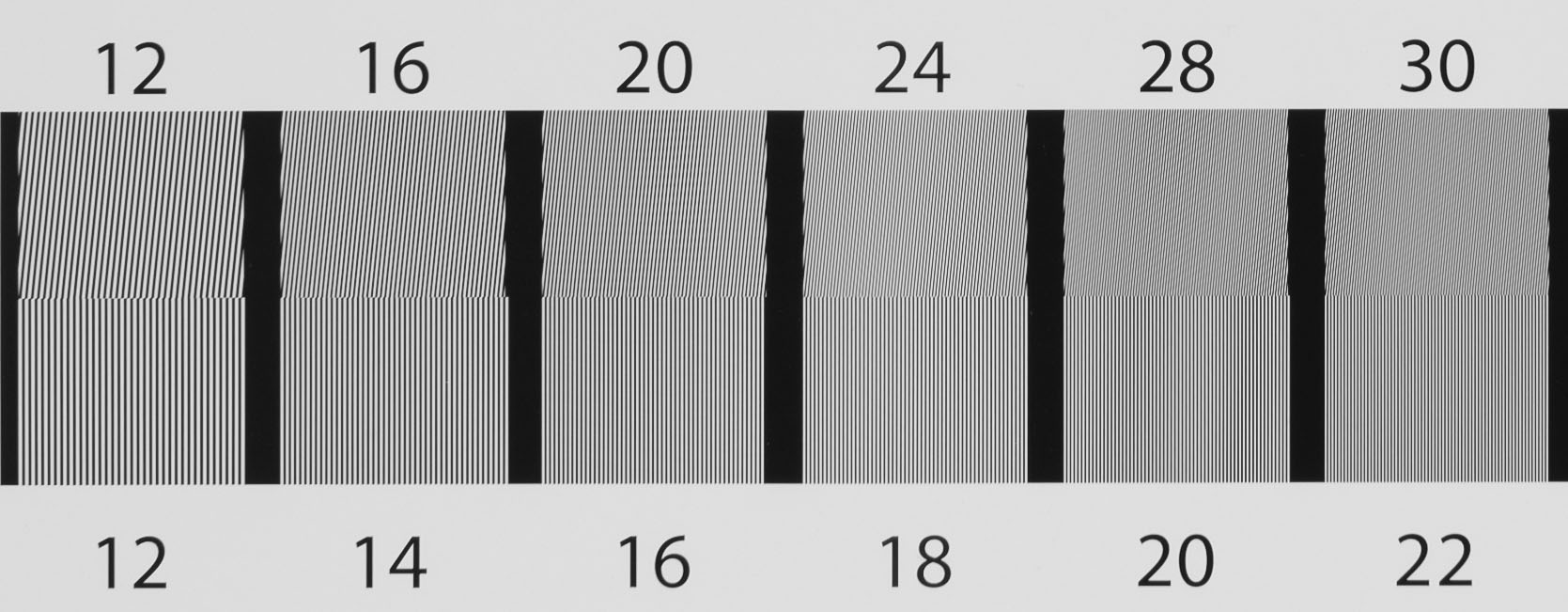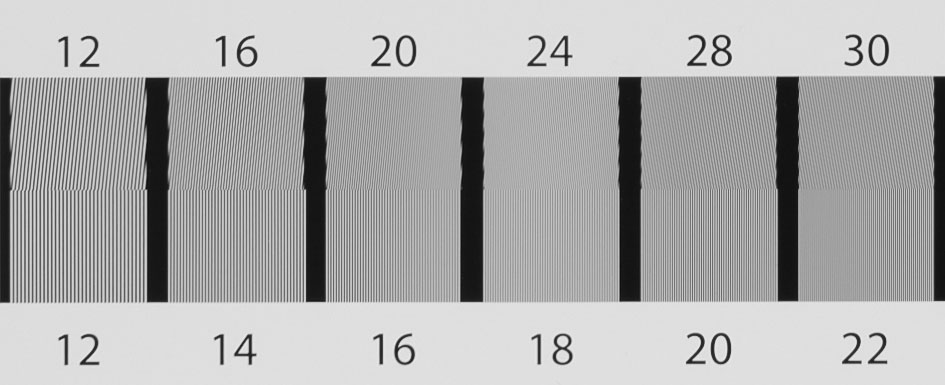 35mm. Comparsa fenomeni di aliasing tra 2000 e 2200 LW/PH.