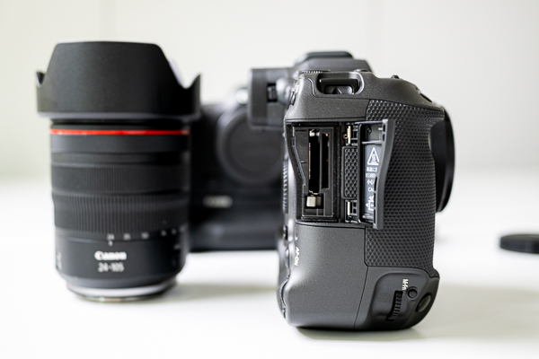 Tra le particolarità 'fisiche' della fotocamera, troviamo lo stesso livello di resistenza agli agenti atmosferici della serie Canon EOS-1D. Ci sono novità anche nella slitta flash, che ora integra il connettore multifuzione per accessori che ha recentemente debuttato sulle videocamere, per connettere e alimentare, ad esempio, il nuovo microfono digitale di casa Canon o accessori di terze parti come l'adattatore XLR di Tascam. Tra essi anche un nuovo trasmettitore per flash Speedlite, che diventa molto più piccolo e leggero: non integra infatti alcun comando fisico, visto che la connessione digitale permette di gestire tutte le funzioni dallo schermo e dal menu della fotocamera. Un ulteriore commento sulla fotocamera: è decisamente più leggera della sorellona reflex, ma anche di una EOS R5 con battery grip, tanto che la prima volta che la si impugna sembra di essere di fronte a un mock-up.
