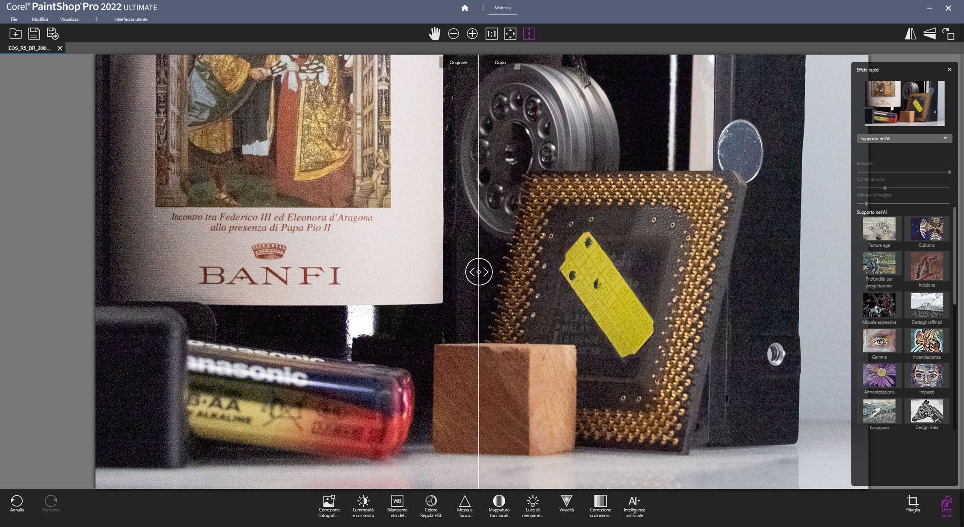 È come se, forse per il fatto di non mai davvero "sfondato" tra i professionisti, Corel abbia deciso di percorrere strade alternative – l'AI e il ritocco "single-click" sul JPEG potrebbe in effetti essere una via. Se questa fosse davvero la strategia scelta, purtroppo per Corel, dobbiamo dire che gli strumenti AI necessitano di un consistente lavoro di affinamento prima di essere paragonabili a quelli offerti da altri programmi 1-click come Luminar Ai. La sensazione, con questa versione 2022, è un po' quella di essere a metà del guado: non uno strumento per professionisti, non ancora uno strumento immediato per ritocchi automatici.