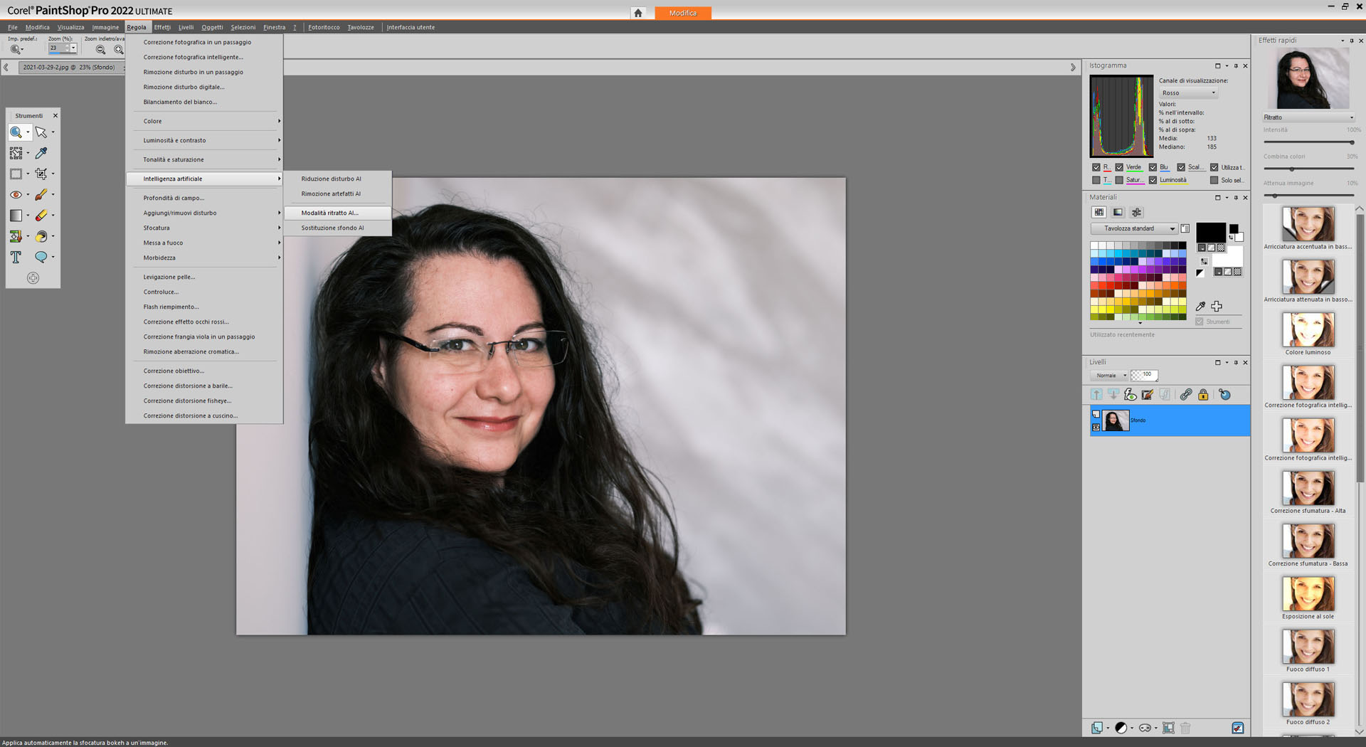 Corel ha aggiornato il suo pacchetto di fotoritocco PaintShop Pro, ora giunto alla versione 2022, con l'introduzione dell'intelligenza artificiale. Funzioni come sostituzione sfondo e modalità ritratto beneficiano dell'analisi della scena, che distingue i soggetti e applica correzioni mirate, ma anche l'interfaccia ha beneficiato di un consistente restyling (o, per meglio dire, sono state inserite nuove opzioni), ed è stato aggiunto il supporto al formato HEIF.