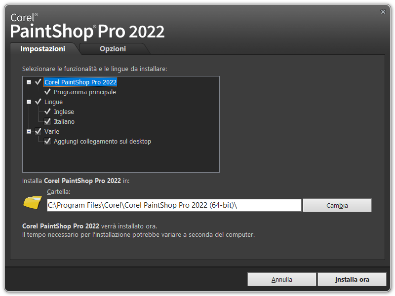 Come da tradizione, Corel offre due versioni del pacchetto: Paint Shop Pro 2022 (69,99 Euro versione completa, 49,99 Euro aggiornamento) e Paint Shop Pro 2022 Ultimate (89,99 Euro versione completa, 69,99 Euro aggiornamento). Quest'ultima, oltre al software principale, include numerosi pacchetti aggiuntivi: dal RAW converter After Shot 3 alla collezione di trame, pennelli e sfondi royalty-free, da Painter Essentials 8 (software che trasforma foto in dipinti) a PhotoMirage Express (software di animazione di immagini statiche).
