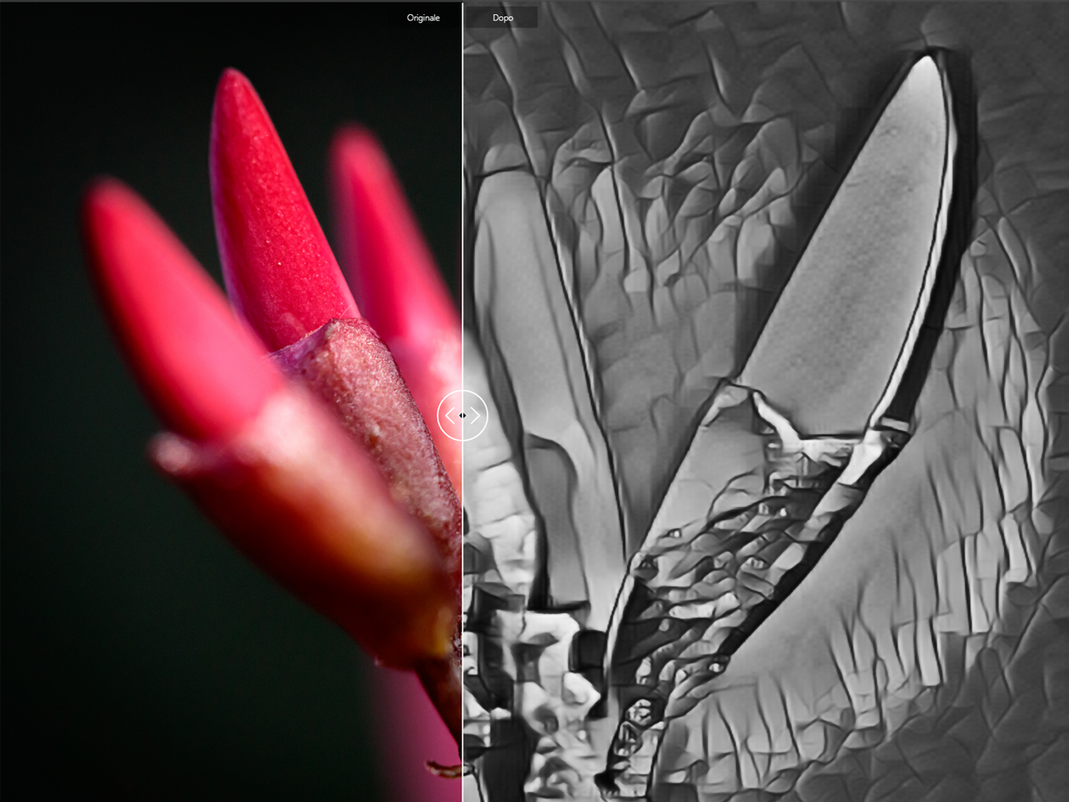 Più positivo il giudizio su Trasferimento stile AI, che in sintesi aggiunge una categoria di effetti (Supporto dell'AI) a un già piuttosto lungo elenco di effetti "standard" quali B/N, Artistico, Paesaggio, Retrò, Ritratto, Stili pellicola e Tradizionale. Una trentina di effetti in tutto (27, per essere precisi), tutti piacevoli e regolabili per intensità, trattamento del colore e livello di dettaglio da preservare. Gli effetti (non solo AI) si possono sommare tra loro, il che consente di produrre un numero esorbitante di varianti.