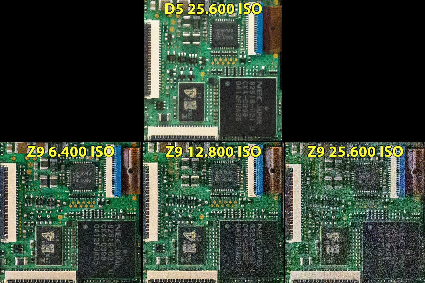 Complessivamente, la nostra personale impressione è che la sensibilità più direttamente confrontabile con la 25.600 ISO della D5 sia la 12.800 della Z9. Il giudizio è in qualche misura opinabile, ma è piuttosto chiaro che, sempre rispetto ai 25.600 ISO della D5, la Z9 sia in vantaggio a 6400 ISO e in svantaggio a 25600 (ovviamente). In definitiva, uno stop in meno in termini di gamma ISO a fronte di punteggi MTF raddoppiati. È prevedibile che lo scambio risulterà vantaggioso per molti fotografi.