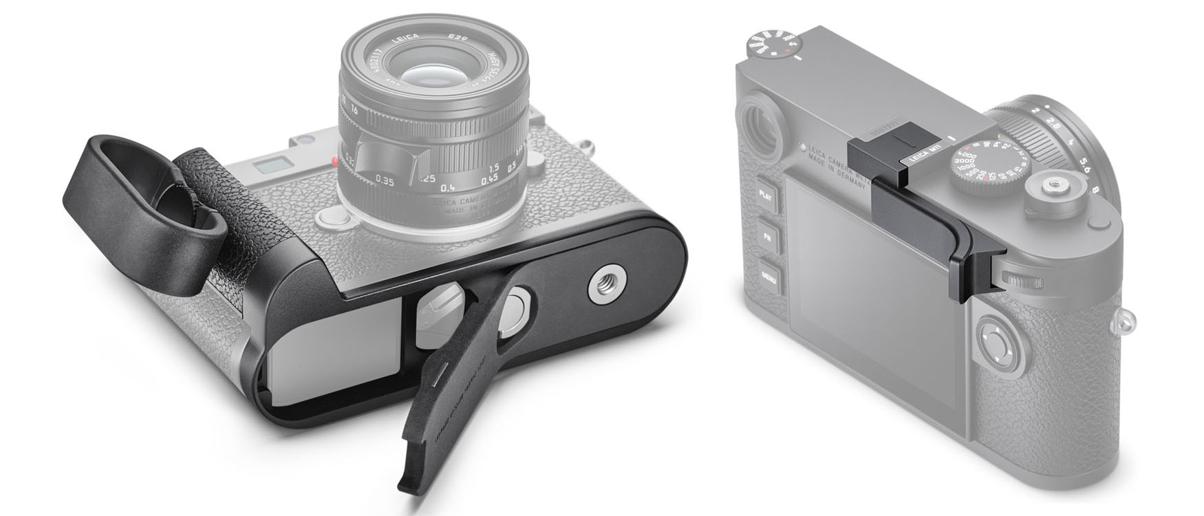 1 – Il corpo macchina della M11 è inconfondibilmente M. Chi desidera una presa più salda può contare sull'Handgrip M11 (365 Euro) e/o sul supporto per pollice maggiorato (265 Euro). Soprattutto il primo, con passadita rimovibile, può fare una grossa differenza.