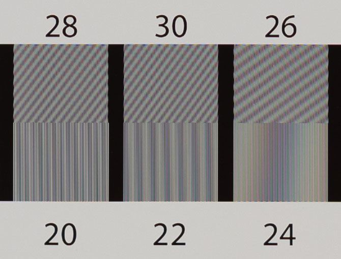 Valutazioni analoghe si possono fare esaminando file "tirati" di 6 EV per valutare la malleabilità del RAW, mentre fino a 5 EV i 36 e i 18 Mpixel sembrano effettivamente avere un margine di vantaggio sui 60 Mpixel. Questo però, ovviamente, a fronte di una significativa perdita di dettaglio, come mostra l'ultima serie di confronto qui sopra. Accidentalmente, a 18 Mpixel è emerso anche, nelle nostre condizioni di prova, un evidente effetto moiré che, soprattutto a 60 Mpixel, è ancora molto lontano dal manifestarsi.