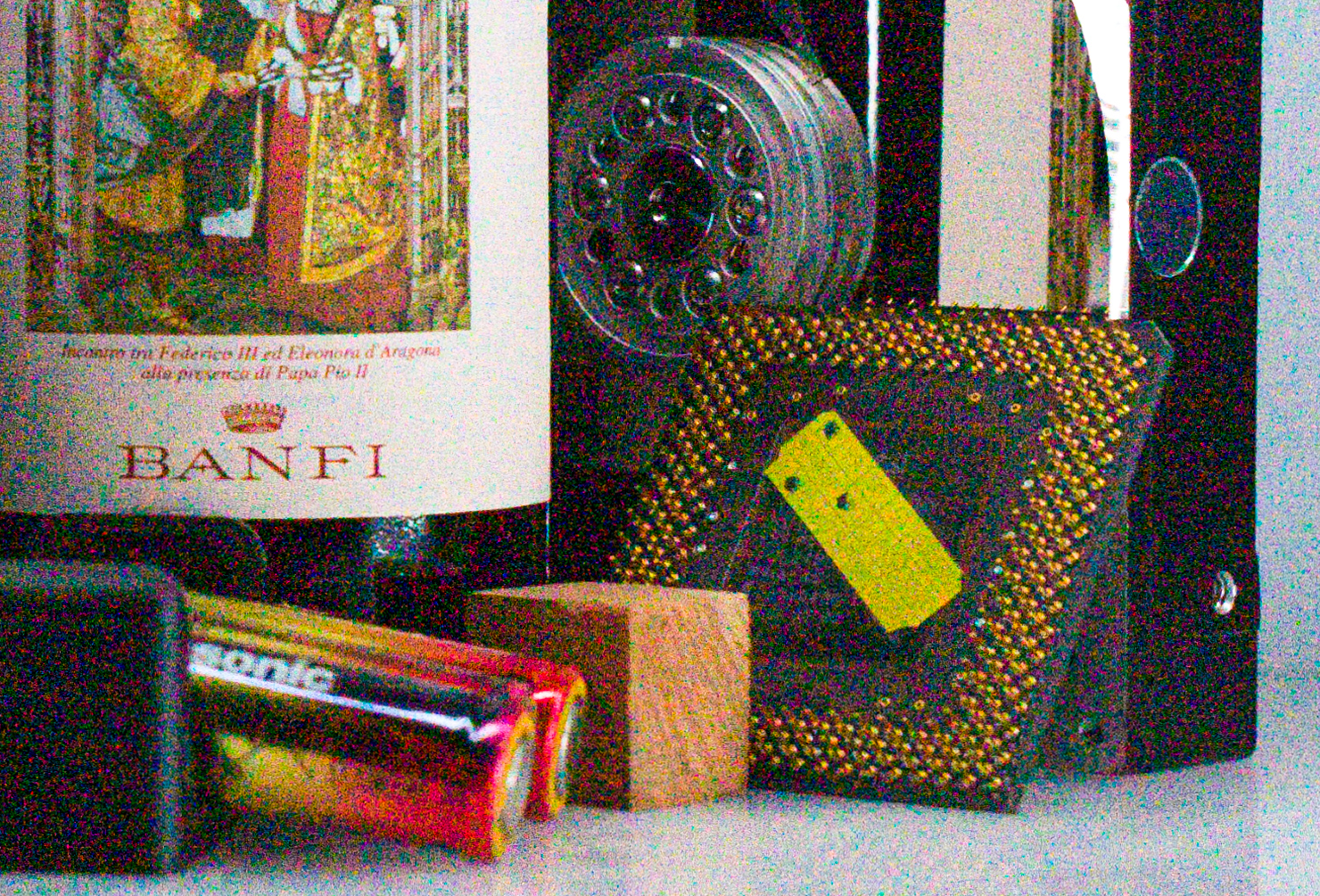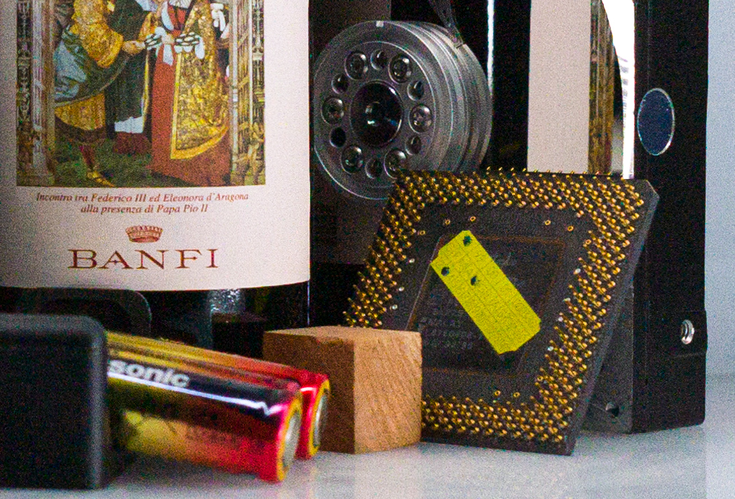 Utilizzando le risoluzioni ridotte, i file sono un pizzico più puliti, ma i vantaggi pratici a 6400 ISO e oltre, dove ci saremmo aspettati i benefici maggiori, sono trascurabili. Si può notare ad esempio, per entrambe le risoluzioni Medium e Small, come le cifre sull'etichetta gialla del processore rimangano vagamente intelleggibili anche a 25.000 ISO, ma con molta fatica. I 50.000 ISO rimangono a nostro avviso abbondantemente fuori portata anche per le risoluzioni ridotte.