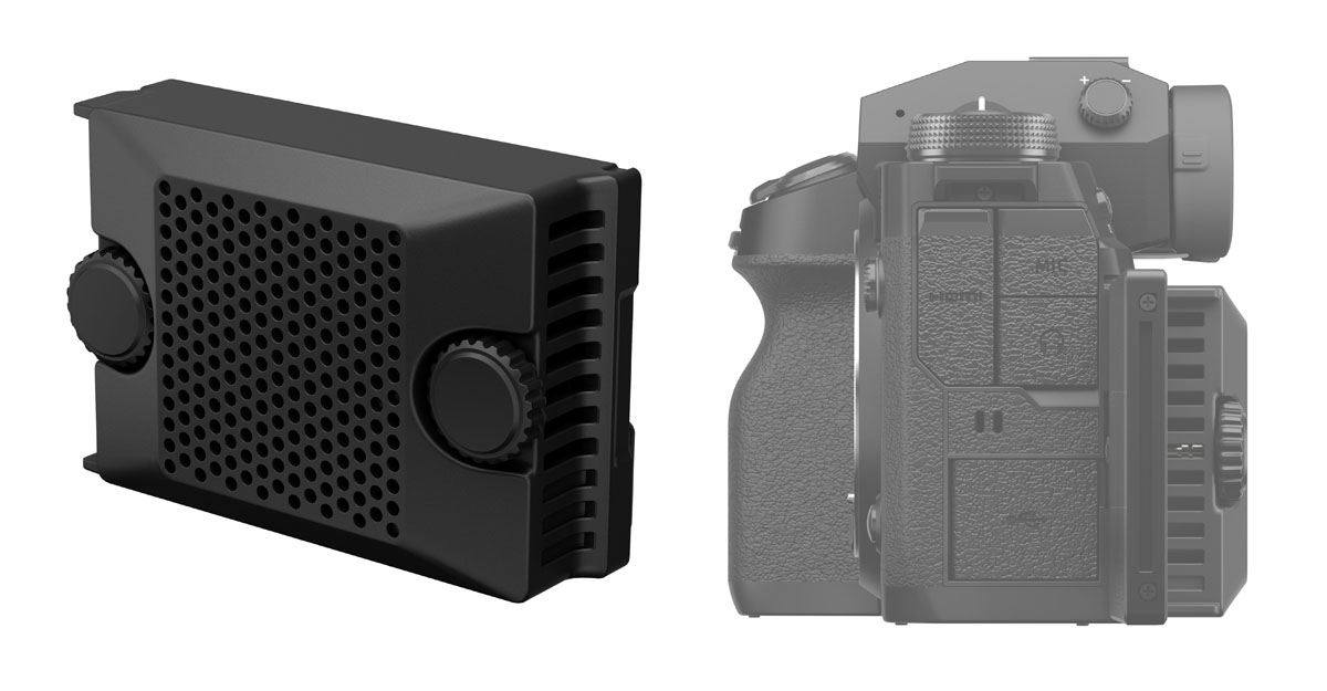 Curioso il dissipatore di calore attivo opzionale (qui sopra), che si fissa al dorso della fotocamera e contribuisce a prolungare la durata della registrazione in condizioni critiche. Non che la fotocamera, di suo, si comporti male: 240 minuti consecutivi di registrazione 4K / 60p @ 100 Mbps in ambiente a 25°C, con soglia di allarme impostata su "High". La ventola può risultare preziosa in ambienti molto caldi, ma con un prezzo di listino di circa 200 Euro, non può certo dirsi a buon mercato.