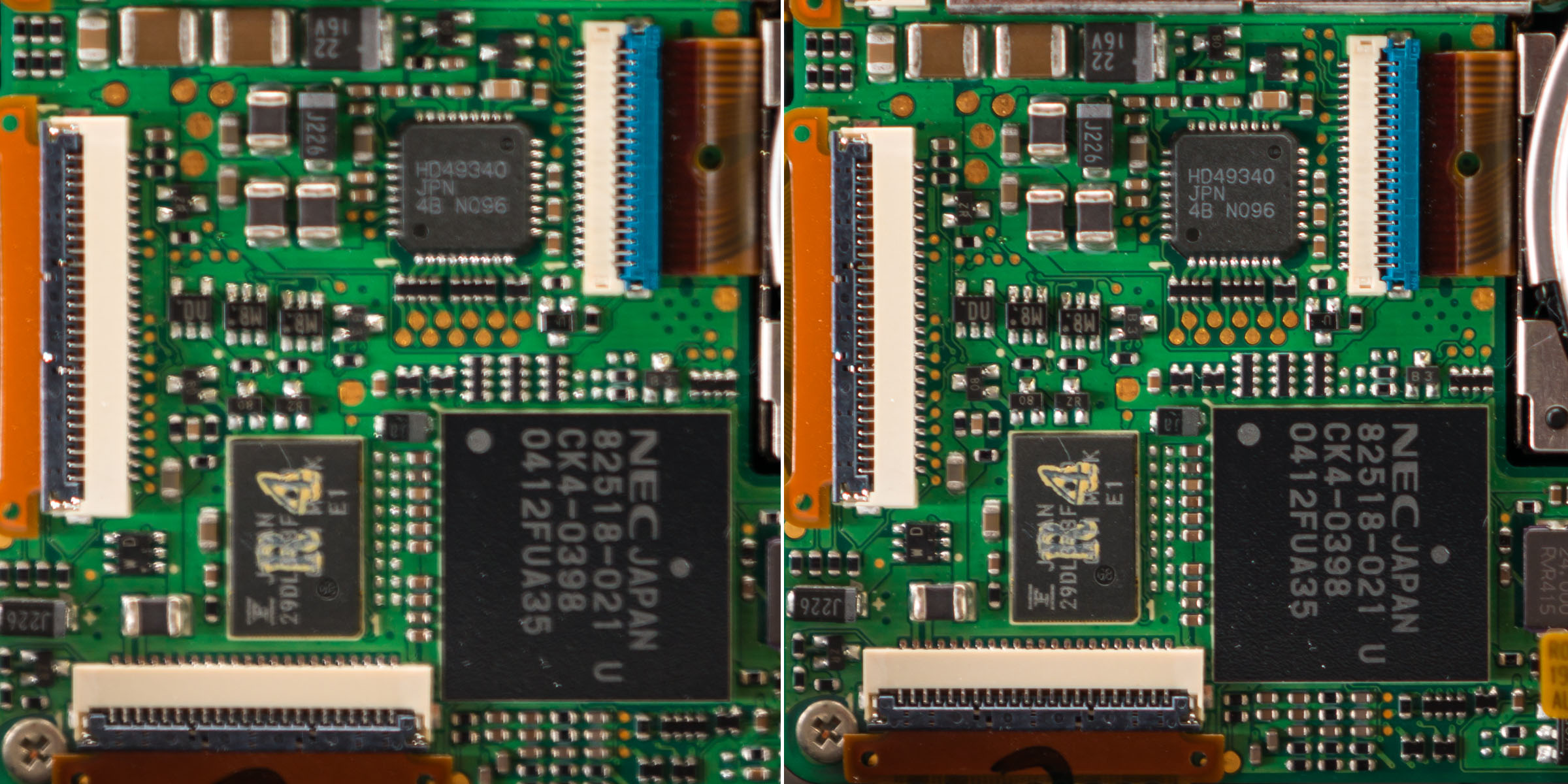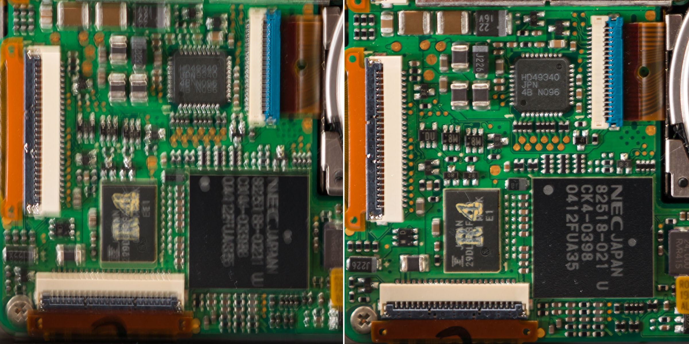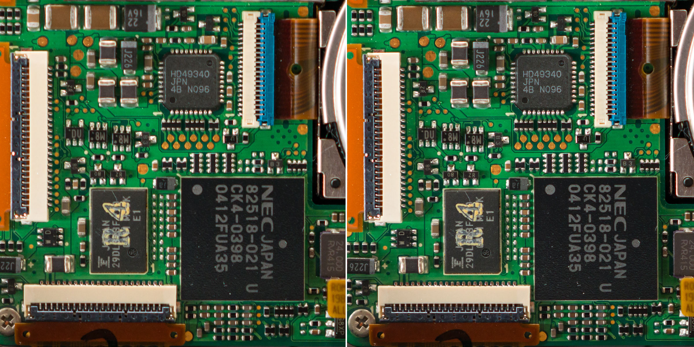 Per la prova dello stabilizzatore ci siamo serviti del 55mm, svolgendo la consueta prova empirica dei 5 scatti tra cui selezionare il migliore, della quale riportiamo i risultati (NOTA: a sinistra lo scatto non stabilizzato, a destra lo scatto stabilizzato). Come si può vedere, con la focale di 55mm, 1/125s si è rivelato essere un ragionevole tempo di sicurezza anche in assenza di stabilizzatore. Scendendo a 1/30s, senza stabilizzatore non ci è stato più possibile ottenere uno scatto nitido (ricordiamo ancora che quello mostrato è il migliore), mentre con stabilizzatore attivo è stato ancora relativamente facile. Sotto il trentesimo di secondo, anche con stabilizzatore il risultato non è mai perfetto, e ovviamente al crescere del tempo diventa sempre meno probabile ottenere uno scatto utilizzabile, ma fino a 1/4s abbiamo ottenuto almeno uno scatto utilizzabile perlomeno a ingrandimenti inferiori al 100%.