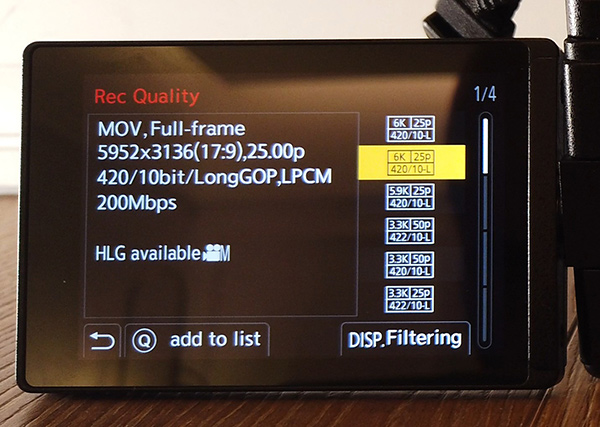 A proposito, ora anche i formati di registrazione C4K/4K a 10 bit possono esssere registrati senza limiti di tempo e possono essere registrati con campionamento colore 4:2:2 fino a 60p (prima accessibili solo al massimo in 10 bit 4:2:0), anche se in modalità crop APS-C/Super 35mm. Registrando su tutta la superficie del sensore ci si ferma a 30p. In Full HD è possibile registrare fino a 120p.