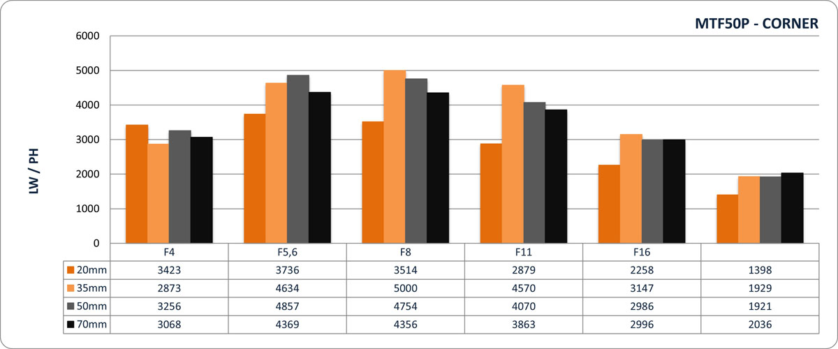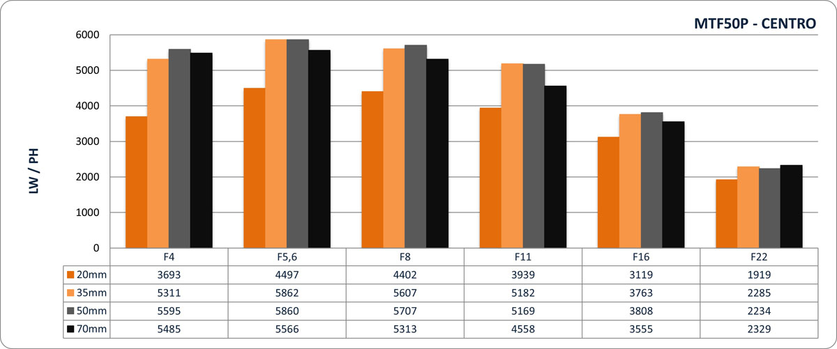 Quanto ai punteggi assoluti, parliamo di picchi massimi superiori a 5800 LW/PH, il che, anche tenendo conto di un'ottimizzazione effettuata per la focale 70mm (leggermente più "morbida"), che porta a una certa sovrastima alle focali inferiori, è un risultato oggettivamente eccezionale.