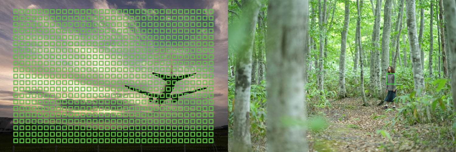 A sinistra: copertura dei punti AF. A destra: situazioni difficili come questa, con soggetto lontano e "inghiottito" dallo sfondo, sono quelle in cui si apprezza maggiormente il contributo dell'Ai (immagini:Sony).