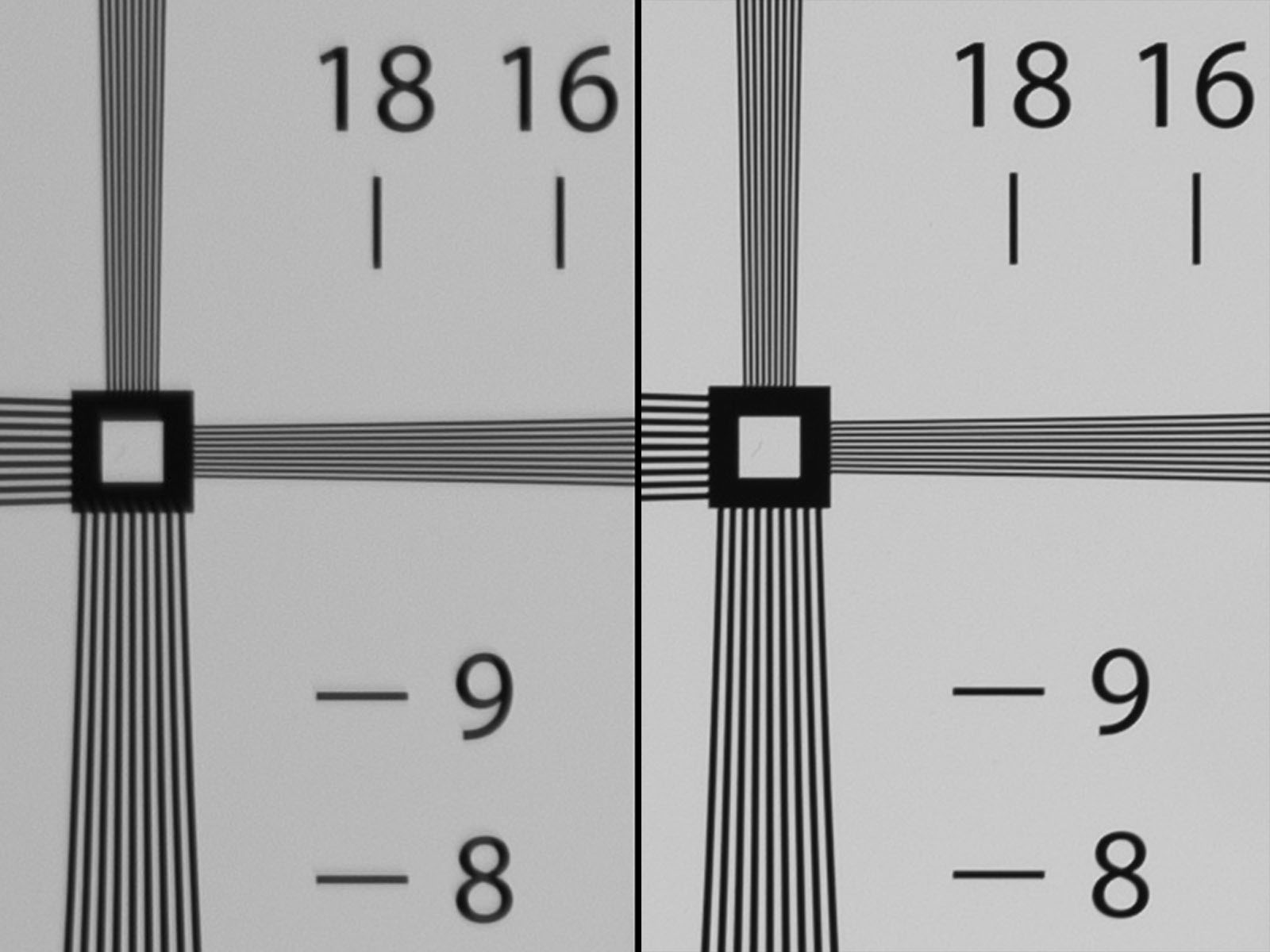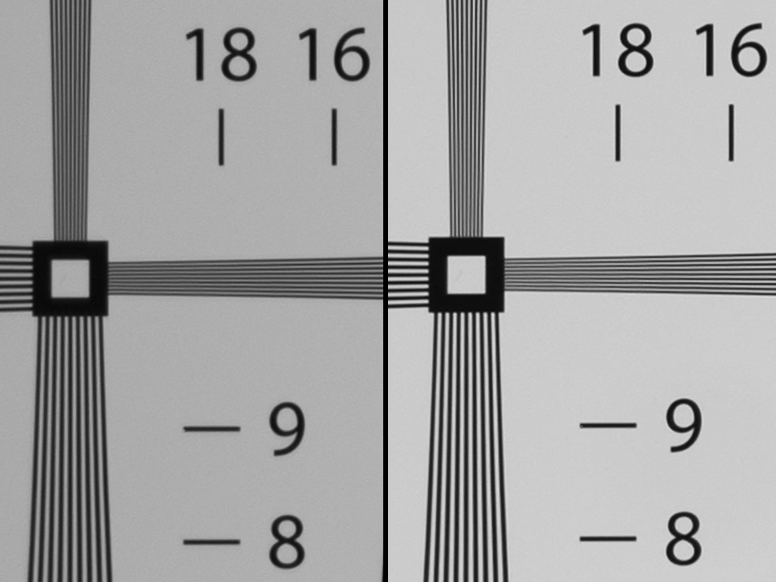 Summicron-SL 50 f/2 ASPH, nitidezza ai bordi. A sinistra f/2, a destra f/5.6. Ingrandimento 200%.