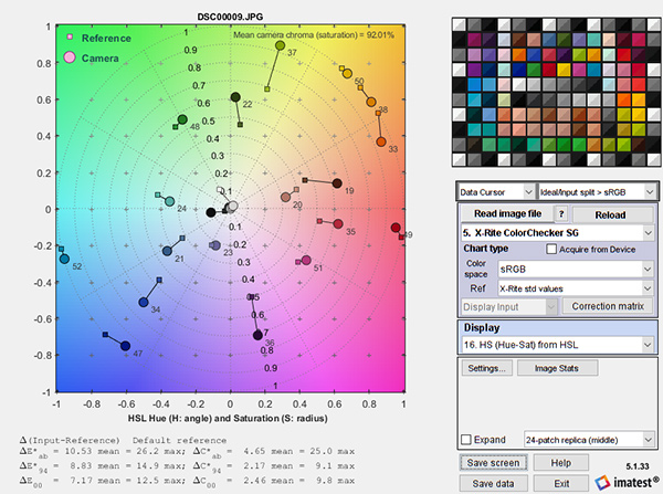 Abbiamo riscontrato un buon comportamento cromatico, caratterizzato da una saturazione "da reflex", perfino inferiore al 100% quando normalmente le compatte e le mirrorless super-saturano. In questo ambito le dichiarazioni di Sony in merito a un netto miglioramento sotto il profilo della resa cromatica trovano pieno riscontro e in particolare si rileva un balzo in avanti sul fronte della resa dell'incarnato. A conferma anche il fatto che abbiamo riscontrato errori puramente cromatici molto bassi già col JPEG, altro fatto non comune.