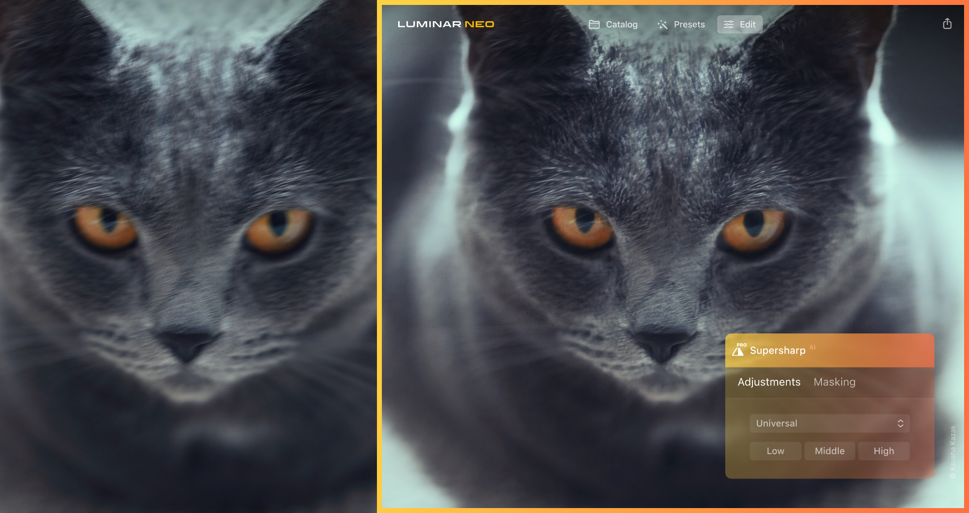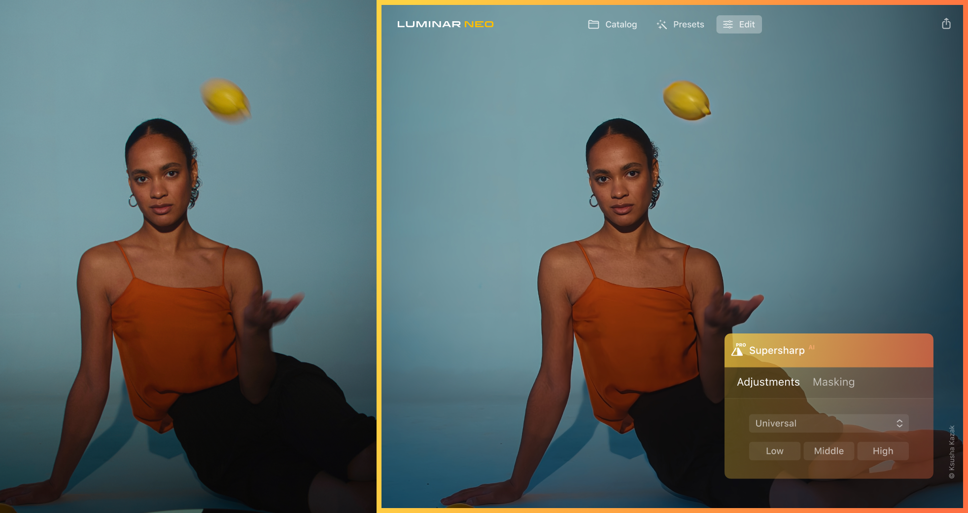 Chiudiamo con uno degli optional, Supernitido (39 Euro), per due semplici motivi. Il primo, è che il (micro)mosso è un altro dei problemi più frequenti della fotografia amatoriale. Il secondo, è che il risultato assicurato dall'AI è semplicemente impossibile da ottenere altrimenti (vedi i due esempi qui sopra). Siamo stati finora abituati a credere che contro lo sfocato e il mosso non ci fosse nulla da fare in post-produzione… Beh, non è più così. Guardare per credere.