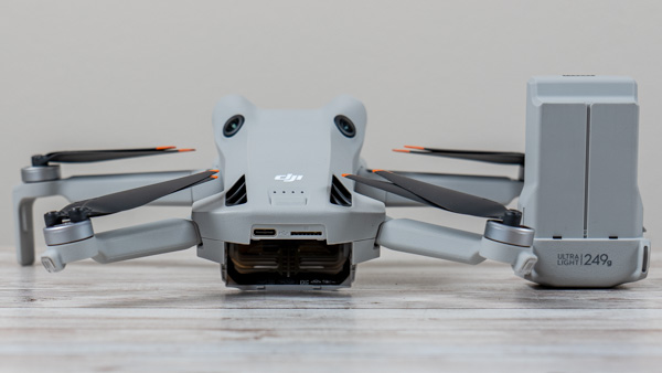 Resta un punto fermo la possibilità di orientare la videocamera in verticale per foto e video già pronti per le storie social e i reel. La videocamera resta compatibile con gli accessori del modello precedente, tra cui l'ottica grandangolare e i filtri ND. Il drone offre a bordo una piccola memoria di emergenza di 2 GB. La batteria standard offre 34 minuti di autonomia; esisterebbe anche la batteria Plus a maggiore energia, che però è anche più pesante e farebbe sforare il limite dei 250 grammi, per cui in Europa non viene commercializzata.