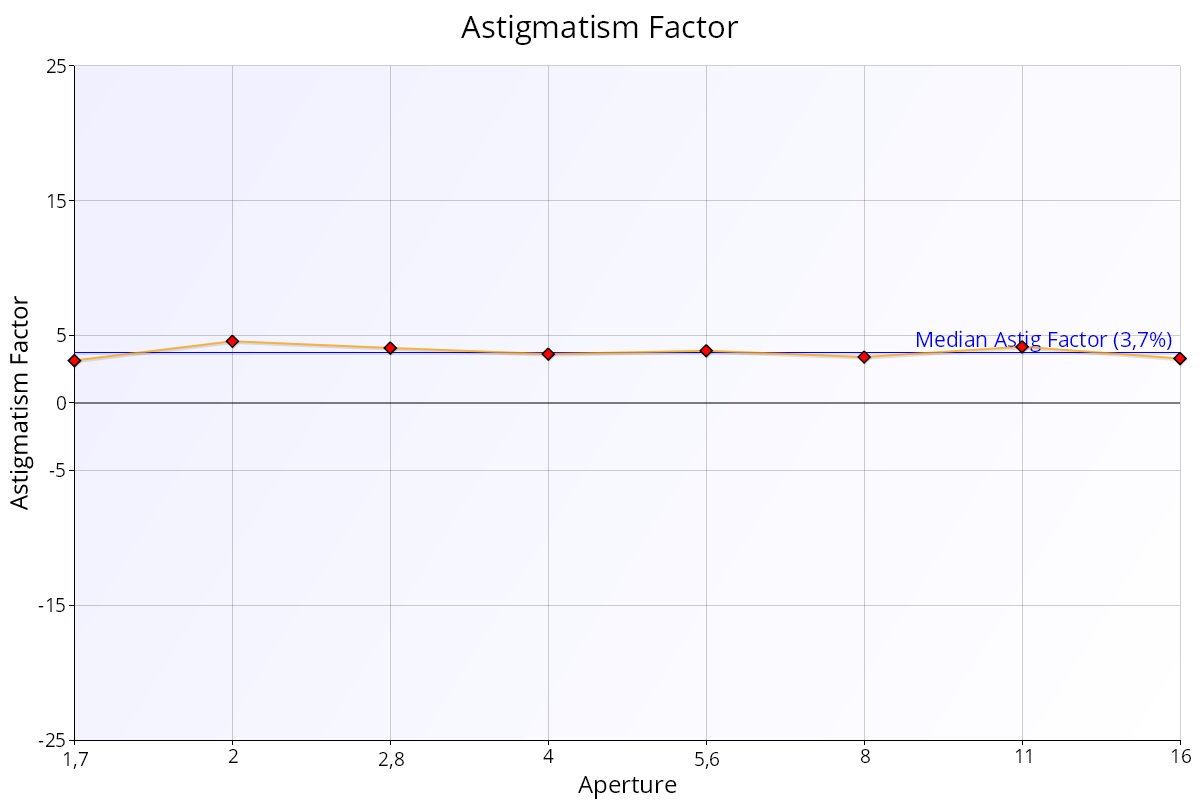 Anche l’aberrazione cromatica è insignificante (meno di mezzo pixel alla massima apertura), e l’astigmatismo è mediamente inferiore al 4%.
