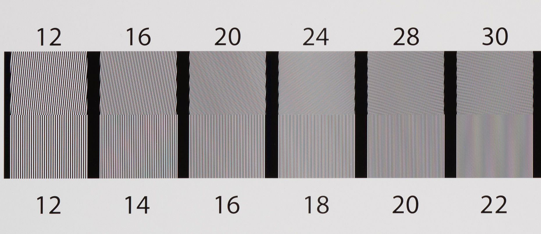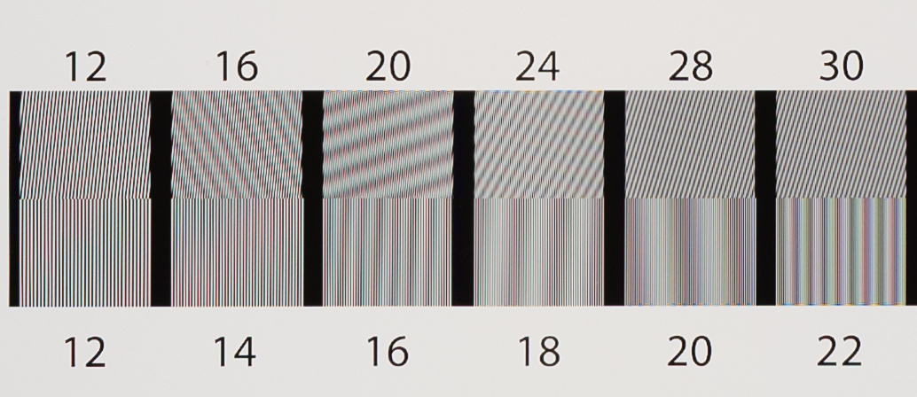 I 18 Mpixel massimizzano il rapporto segnale/rumore e il punteggio MTF non si riduce sostanzialmente rispetto ai 36 Mpixel, il che sembrerebbe farne una buona scelta, ma, osservando le immagini a parità di dimensioni con le risoluzioni superiori (es: pieno schermo PC), si nota che la minore risoluzione, e la grana più grossolana che ne deriva, sono in ultima analisi controproducenti: il rumore è più visibile, e anche la leggibilità dei dettagli fini ovviamente peggiora.
