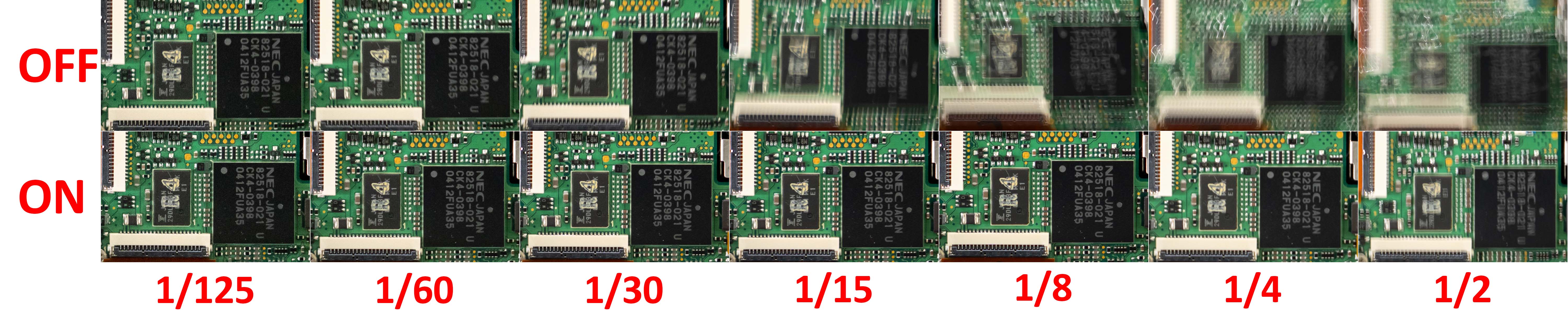 Migliorato anche lo stabilizzatore, accreditato ora (secondo lo standard CIPA) di 7,5 – 8 stop, secondo l’ottica in uso. Lo abbiamo messo alla prova utilizzando il nostro solito metodo empirico, con lo zoom 100-400mm impostato a 100mm (200mm equivalenti). Senza stabilizzatore, già il 1/125s è un tempo critico. Nell’immagine di prova, in cui raccogliamo gli scatti migliori, si nota una nitidezza non impeccabile, e abbiamo ottenuto scatti anche significativamente peggiori. A stabilizzatore attivo, viceversa, siamo riusciti ad arrivare a 1/8s, con lo scatto a 1/4s che non è perfettamente nitido ma è sostanzialmente utilizzabile, al pari del 1/125s senza stabilizzatore. Siamo per questo portati ad assegnare 5 stop, contro i 3,5 - 4 stop che avevamo a suo tempo assegnato alla G9 con analogo procedimento (in quel caso, con focale massima 60mm). Le maggiori performance della Mark II sono dunque tangibili.