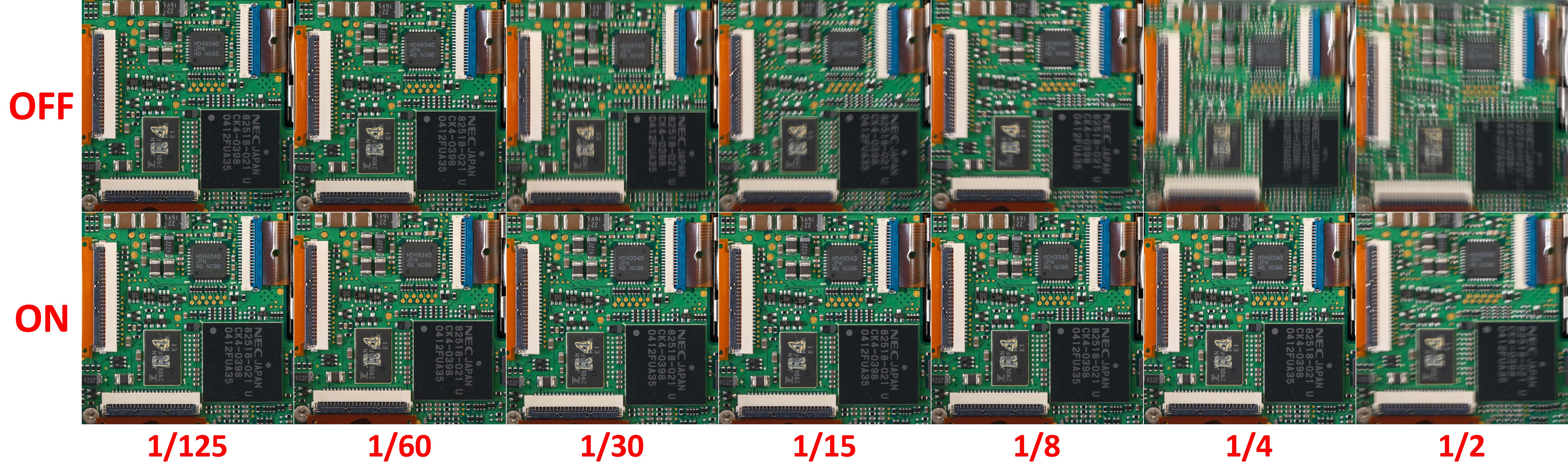 Con stabilizzatore attivato, siamo arrivati ad avere uno scatto, se non perfettamente nitido, certamente utilizzabile, a nientemeno che 1/4s. Siamo per questo portati ad assegnare a questo stabilizzatore, in base alle nostre condizioni di prova, 4 stop di vantaggio, che non è un record assoluto ma che, per una medio formato, è un risultato davvero eccellente.