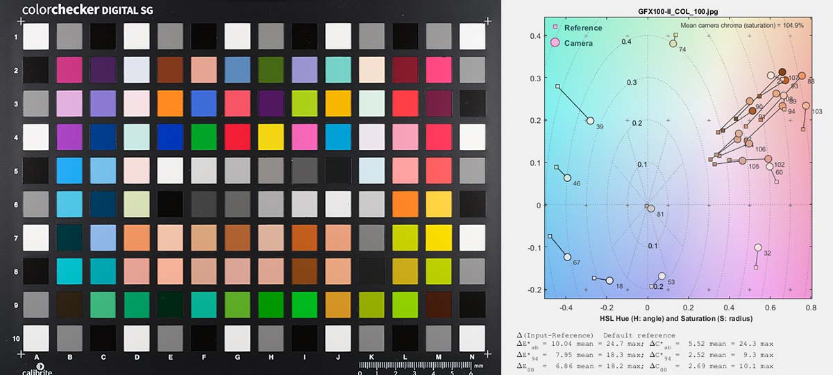 Eccellente il comportamento cromatico, con saturazione (profilo Provia/Standard) nell’intorno del 105% ed errori cromatici medi dC94 nell’intorno dei 2,5 punti, entrambi dati assolutamente costanti lungo tutta la gamma di sensibilità nativa (104,9 – 105,6%, 2,52 – 2,67), e una bella resa dell’incarnato.