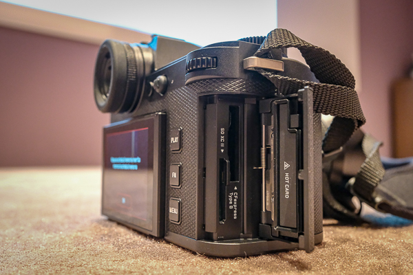Per supportare al meglio la registrazione dei formati video più gravosi, ora uno dei due slot di memoria ospita le schede CFexpress, mentre l'altro continua a puntare sulle SD UHS-II per la massima retrocompatibilità. Tra le specifiche tecniche dedicate al video anche la porta timecode che condivide il connettore con quella synchro flash. Tra i connettori troviamo poi i due jack per microfoni e cuffie, la presa USB-C per ricarica e alimentazione e la porta HDMI di tipo standard.