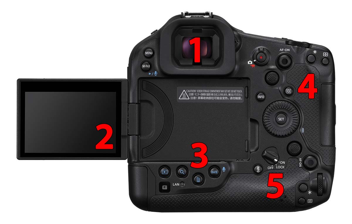 4 – Invariata la modalità di comando fisica (esiste anche l'Eye Control) del punto AF, che dalla 1D-X III si basa su joystick (Multi Controller) e pulsante-PAD (il cosiddetto Smart Controller), cioè un piccolo lettore ottico integrato nel pulsante AF-On capace di leggere i movimenti del pollice.